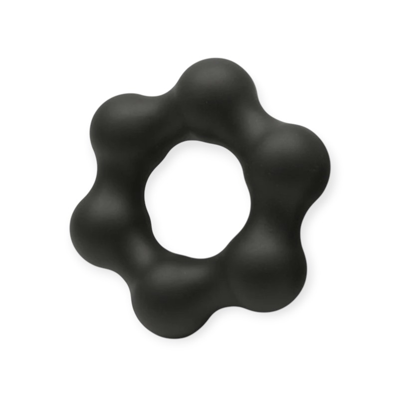 Seu design moderno, com seis pequenas esferas em relevo, oferece uma estimulação sutil e prazerosa para ambos os parceiros. É um acessório discreto, elegante e fácil de usar, perfeito para tornar momentos íntimos ainda mais intensos.